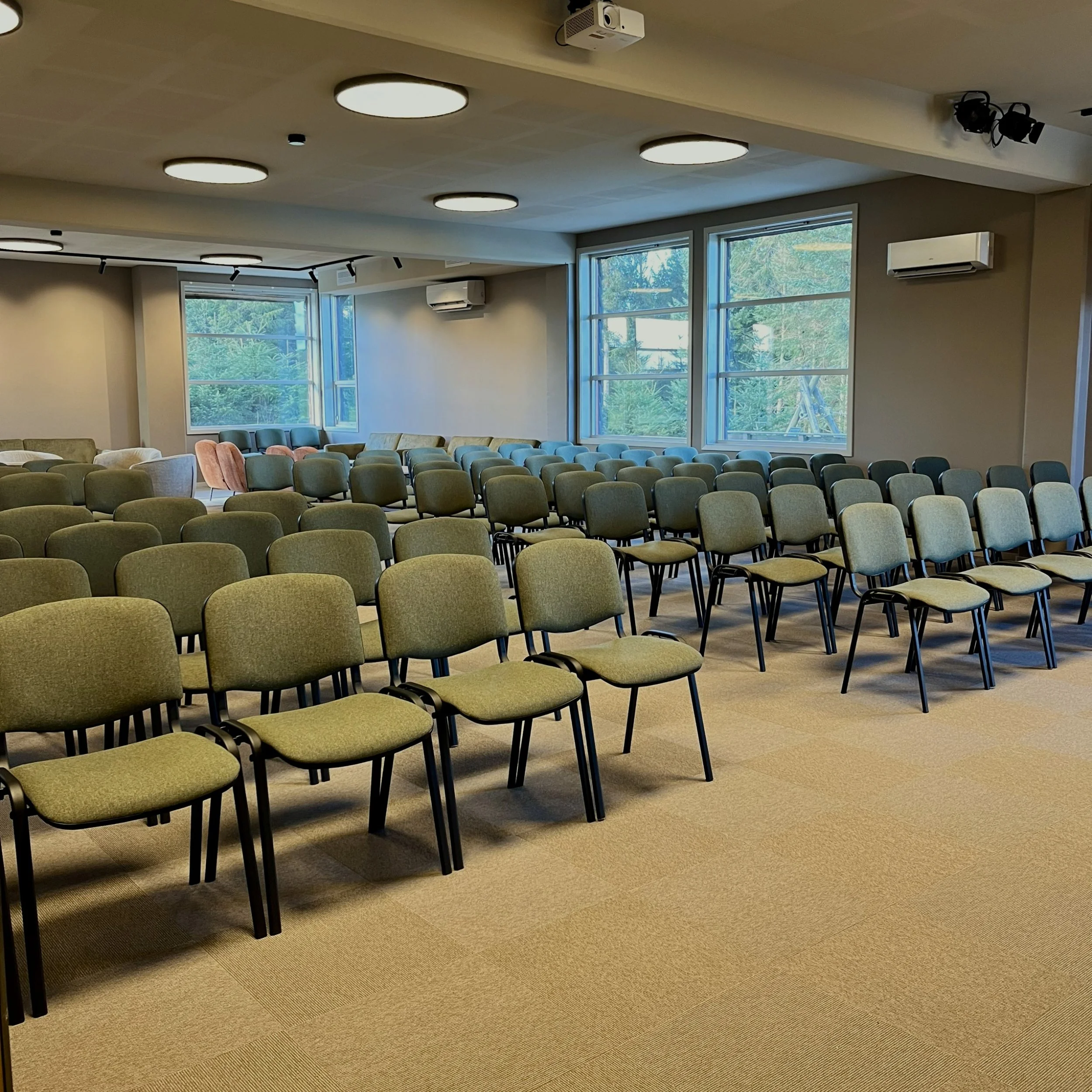 Består av møtesal med plass til ca. 50 ved konferanseoppsett, inntil 150 med «kino» oppsett og en matsal. Bygget har wifi, mikrofon, lydanlegg, projektor og lerret.
